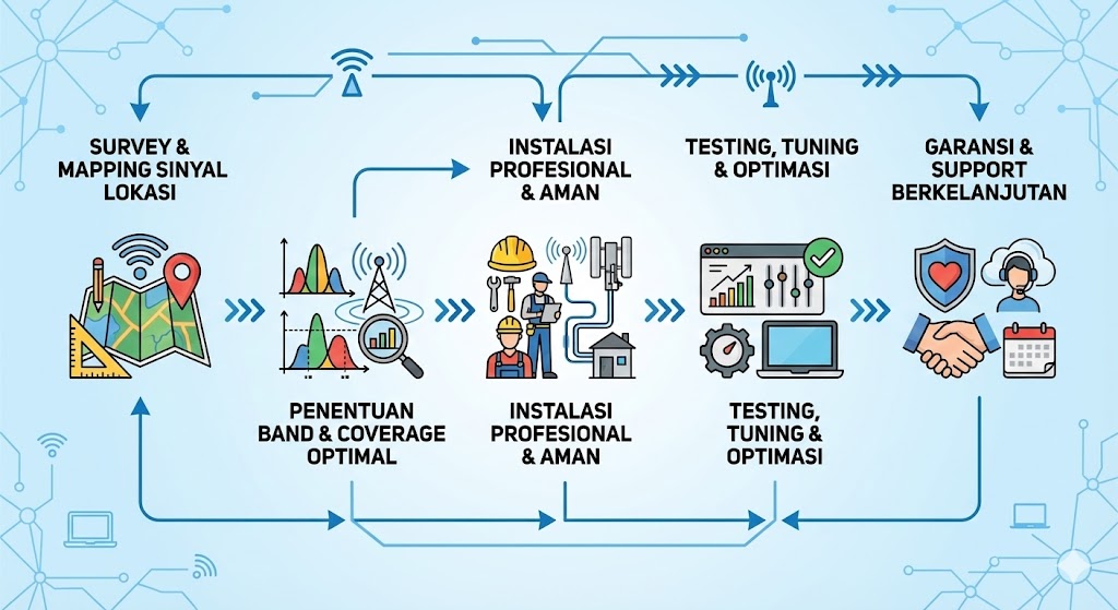 Solusi kami dirancang sederhana, cepat, dan dapat langsung menjawab kebutuhan Anda terkait sinyal lemah di area bisnis atau industri.